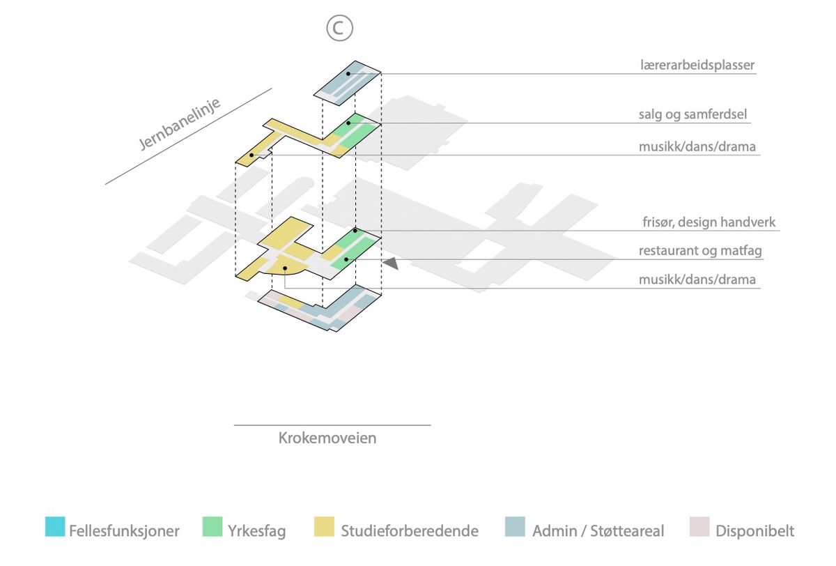 Tre ulike alternativer med forskjellige kostnadsrammer og forutsetninger ble utarbeidet for å finne mulige retninger for utviklingen av skolen. Løsningene ble tilpasset skolens studietilbud og spesifikke ønsker, men med fokus på en generalitet og fleksibilitet som kan møte fremtidige endringer i elevgruppen og skolens pedagogiske modeller.